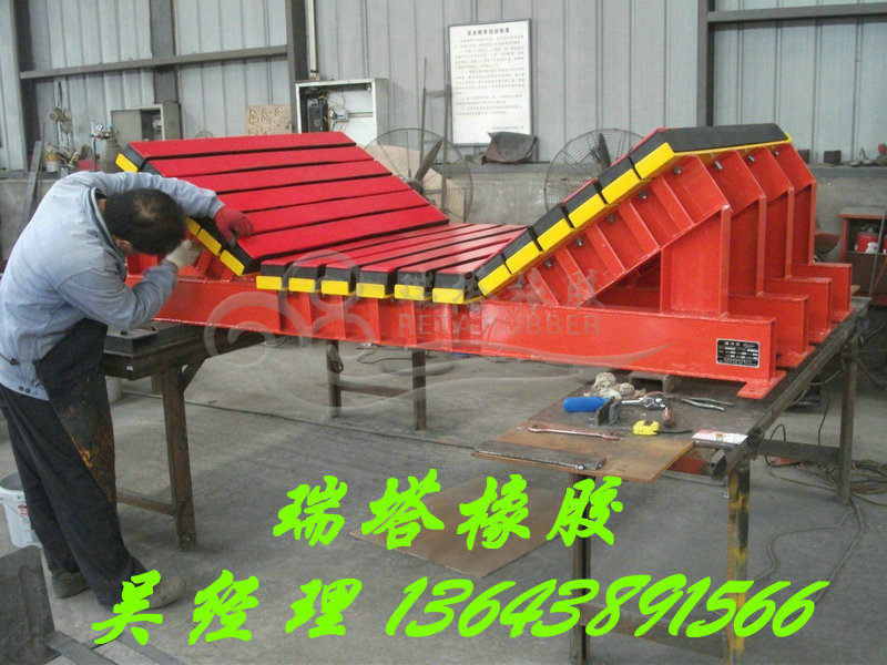 缓冲床设计及安装不合理造成缓冲条磨损较快,并带来很大安全隐患及维护成本;瑞塔橡胶缓冲条长期做出口拥有严格的质量控制体系,但是我们也经常做售后,到现场发现缓冲条磨损过快98%以上是缓冲床设计安装造成不合理造成的,2%是由于特殊条件维护不到位造成诸如煤块散落于缓冲床与输送带之间导致缓冲条磨损较快问题。